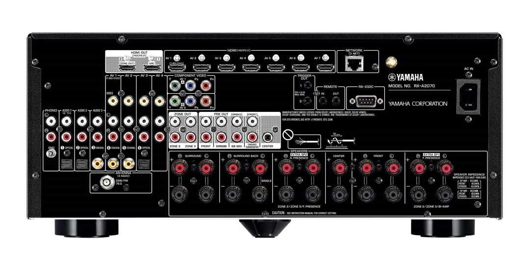 The RX-A2070 is now equipped with three Yamaha original high performance DSP devices, achieving high speed and large capacity audio signal processing. As a result, by using front, centre and surround speakers to create a rear virtual speaker, CINEMA DSP HD3 playback up to 11.1 channels is possible* even with a 7.1-channel speaker configuration. The total reproduction of spatial data, including the vertical axis, helps create an overwhelmingly realistic sound field.