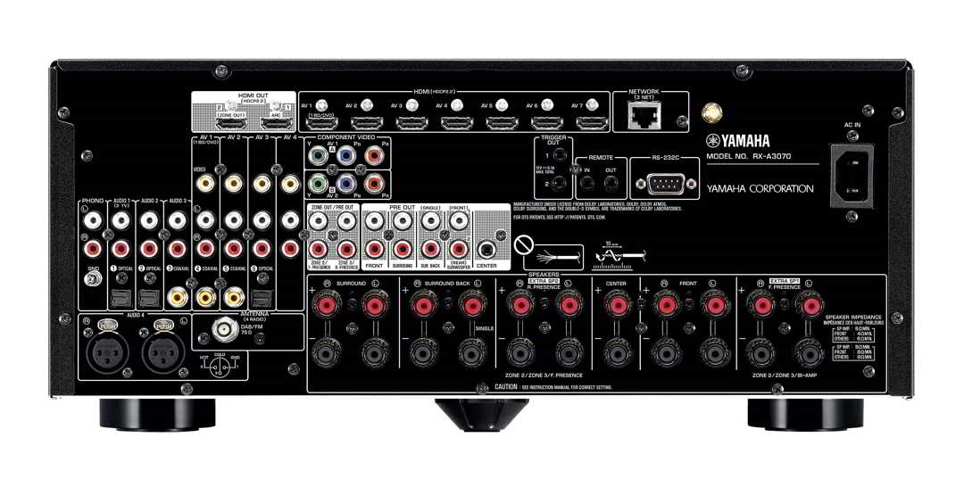 The RX-A3070 comes equipped with XLR balanced audio input terminal that have an outstanding reputation in the world of professional audio and are highly sensitive to noise in the mix. In combination with a Blu-ray Disc™ player such as our BD-A1060, or CD player such as our CD-S3000 / S2100 equipped with balanced output terminal, this enables high-quality signal transmission with reduced degradation of sound quality due to external noise. The balanced input terminal even feature gold-plated XLR terminal produced by Neutrik, a company with a long history of experience working with Yamaha on our for-business mixing consoles.