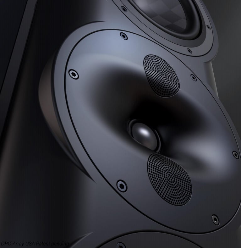 It takes some serious speakers to break the THX Certified Dominus barrier, so how did Perlisten accomplish this feat? The answer is cutting-edge loudspeaker design combined with brute force air displacement. An example of the leading edge technology employed by Perlisten is their ‘DPC’ array that uses three 1.1” drivers across a waveguide that is used on all of Perlisten’s speakers. The ‘tweeter’ is the dome mounted in the middle of the waveguide while two upper midrange drivers are mounted above and below the mouth of the waveguide. These upper midrange drivers are not tasked with playing lower midrange which greatly alleviates their displacement requirements nor are they tasked with playing treble which greatly alleviates their requirements for low mass. Giving the drivers a more focused frequency band enables the engineers to optimize them much more than wide-band drivers. It also allows the engineers to optimize the tweeter for a higher treble range which enables it to perform that much better within its allocated range.